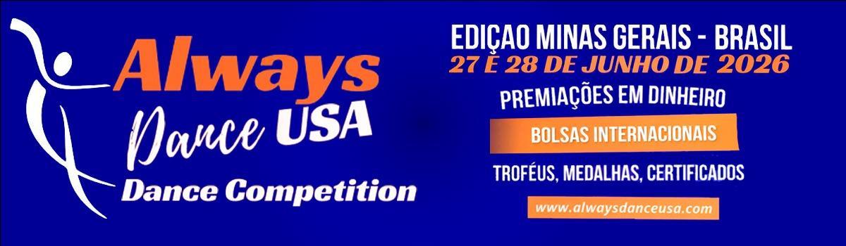 A Competição Estadual Always Dance Brasil acontecerá nos dias 27 e 28 de junho de 2026, reunindo escolas, bailarinos e coreógrafos em um evento que celebra a dança, a arte e a formação artística em alto nível.