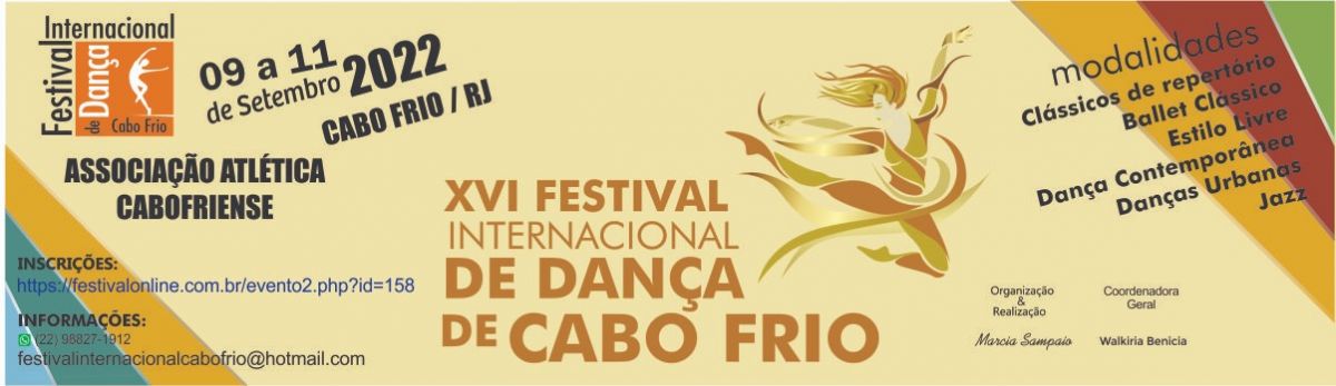 2022 -FESTIVAL INTERNACIONAL DE DANÇA DE CABO FRIO - De 09 a 11 de setembro de 2022